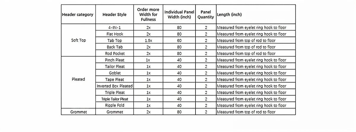 Curtain header styles define the space. Before picking out a curtain header, walk through the details of different styles. Check out the stylish DraperyUS header style options in our Measurement Tool to get a visual insight into the look and size.