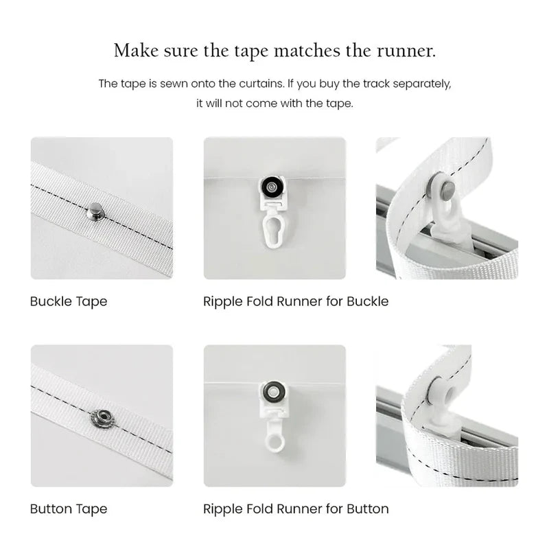 - Compatible systems: curtain tracks, traverse rods, channel rods
